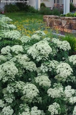 Growing 5 to 12 feet in height and 6 to 10 feet wide, the American Elderberry is ideal for use along sunny to partially shaded woodland borders and other natural areas. With annual pruning done in late winter it forms a dense shrub suitable for landscape borders. A fine addition to the edible landscape, cottage gardens, wildlife gardens and white theme gardens.