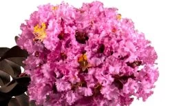 Delta Eclipse Crape Myrtle is an exciting new hybrid with deep maroon leaves that hold their color all season long. During summer an abundance of bright lavender flowers come that contrast beautifully with the dark foliage. Delta Eclipse is a mid-size crape myrtle with a fast rate of growth to 8 to 12 feet in height and 4 to 6 feet wide – the perfect size flowering tree for smaller garden spaces.