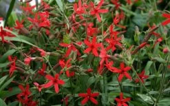 Growing up to 2 feet tall and wide, Scarlet Catchfly is ideal for use in partially shaded gardens and woodland or rock gardens. It is most impressive in small groups or in mass plantings where space allows. If conditions are right the plant will naturalize freely. A fine addition to shade and woodland gardens, hummingbird and butterfly gardens, red theme gardens, rock gardens, perennial gardens, native plant gardens, wildflower gardens and the Xeriscape (low water needs) cottage gardens, gardens, perennial gardens, cottage gardens, and red theme gardens.